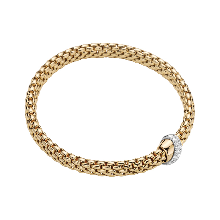 Flexible bracelet entirely made of 18 carat Yellow Gold with diamond rondel. 18k Yellow GoldDIA: 0.20tcwAvailable For Immediate Ship in Yellow Gold Size L (18 cm)