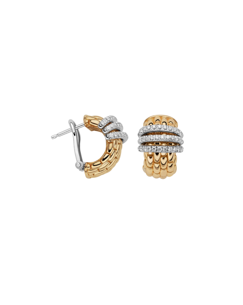 Panorama Earrings in Yellow Gold with 3 Pave Diamond Rondels