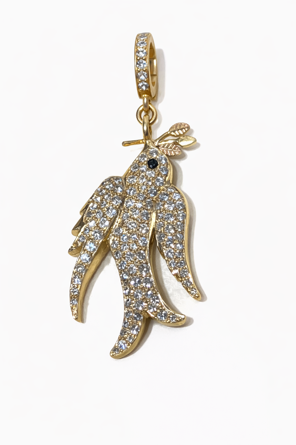 - Pave Diamond Swallow Pendant Charm In 14K Yellow Gold