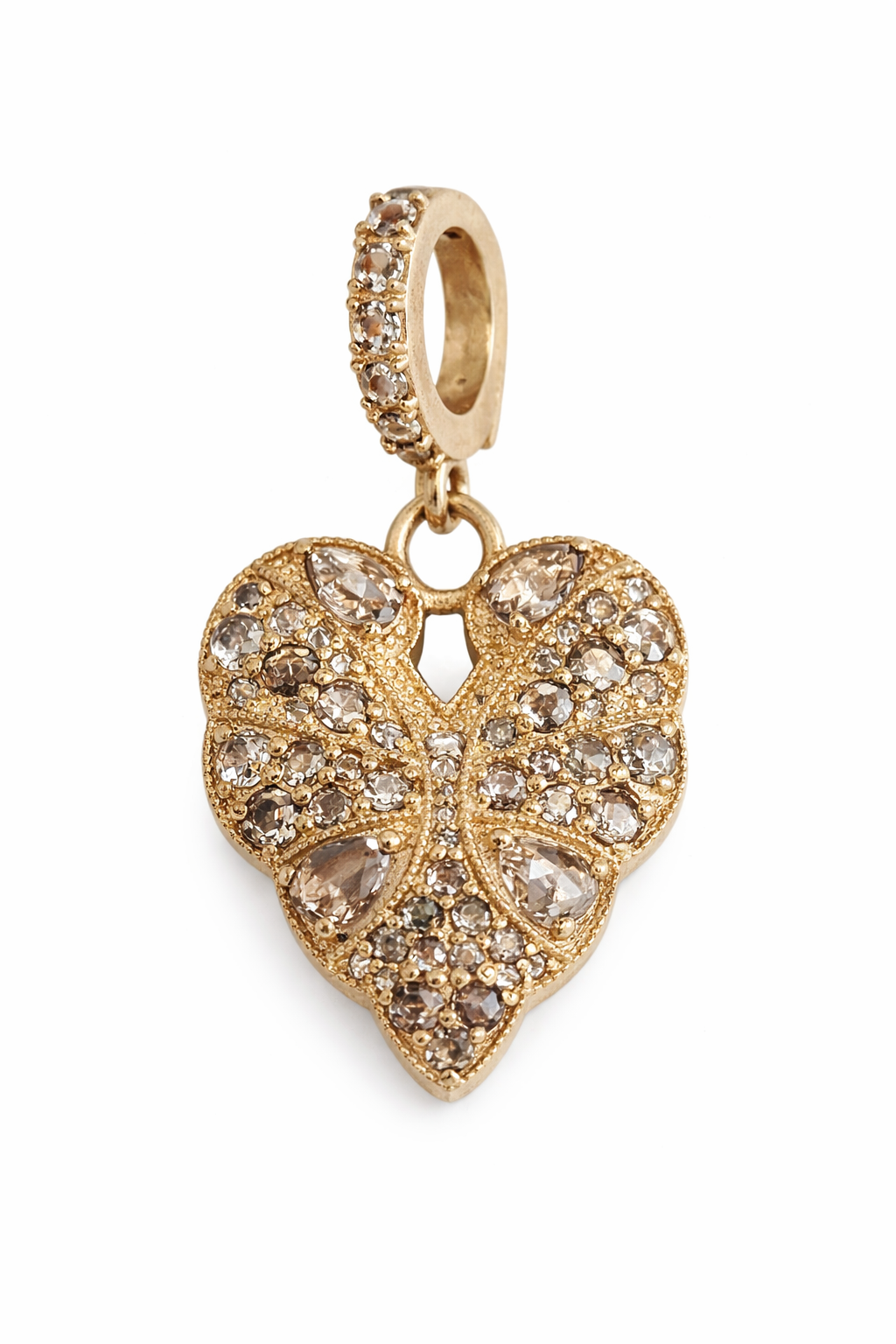 heart rose cut charm in diamonds and 14k gold.