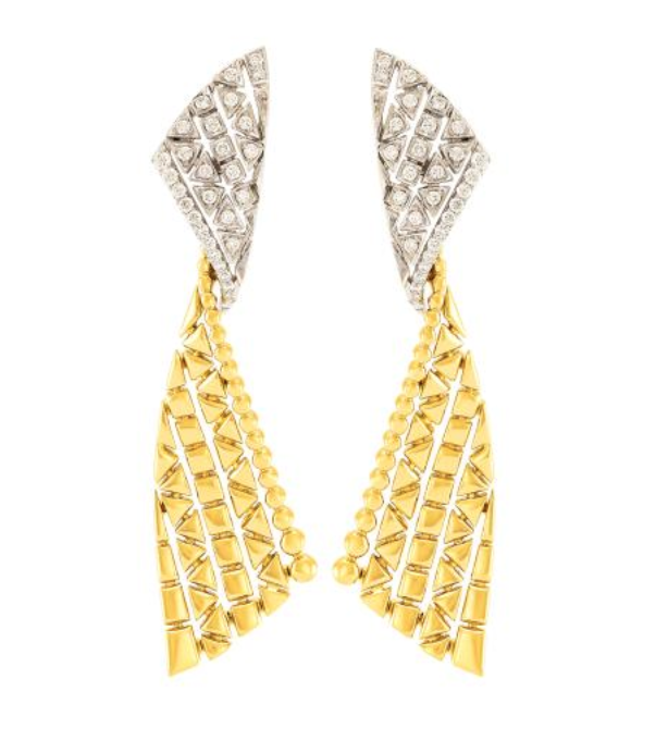 18K Yellow gold earrings with cascade of diamonds.